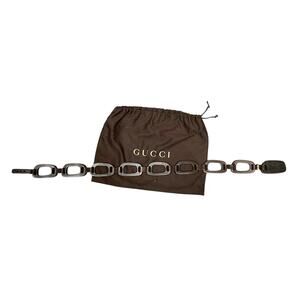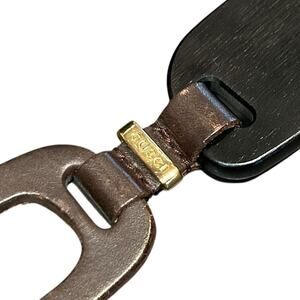 Vintage Brown Black Gucci by Tom Ford Wood Leather Chain Link Cutout Belt XS?