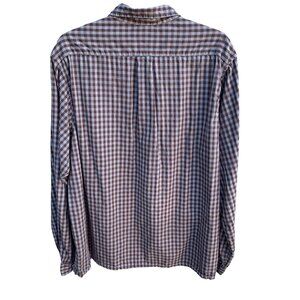 Vintage Brown Blue Gingham Long Sleeve 1/2 Button-Up Madras Cotton Tunic Shirt