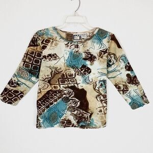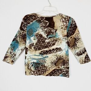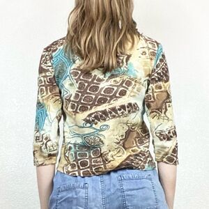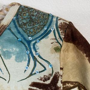Vintage Brown & Blue Sequin Embellished 3/4 Sleeve Shirt