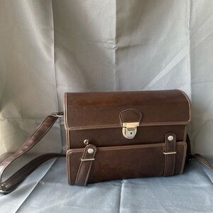 Vintage Brown Briefcase/camera bag with Metal Clasp and Sturdy Handle made: USA