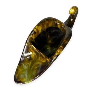 Vintage Brown Ceramic Cornucopia Horn of Plenty Drip Glaze Planter Thanksgiving