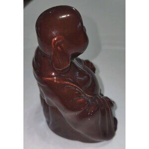 This charming vintage ceramic figurine captures the essence of the Laughing Buddha, sitting contentedly with a joyful expression. The deep brown glaze accentuates the intricate details of his robe and face, making it a delightful addition to any décor. Measuring 4.5x3 inches in height, this piece embodies tranquility and positive energy.