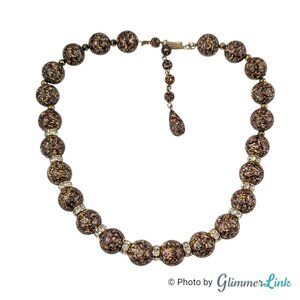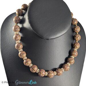 Vintage Brown Confetti Beaded Necklace with Rhinestone Rondelles 1950s