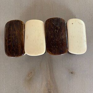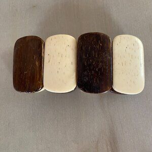 Vintage Brown Cream Chunky Cow Bone Panel Stretch Bracelet Boho Earthy Tribal
