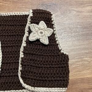 Vintage Brown Cream Floral Crocheted Vest 70s Hippie Baby Girls Size 12M Months