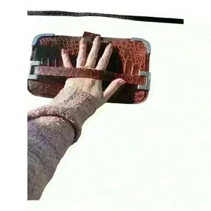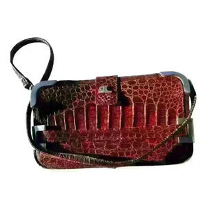 Vintage Brown Crocodile Leather Envelope Handbag Clutch Crossbody Hand Strap