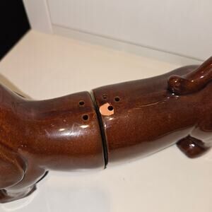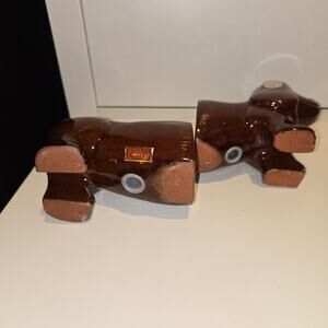 Vintage Brown Dachshund Salt & Pepper Redware pottery Japan