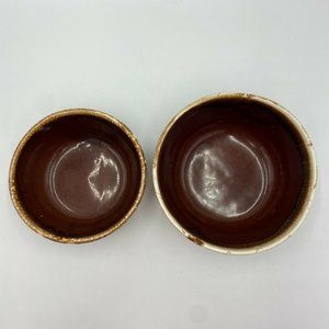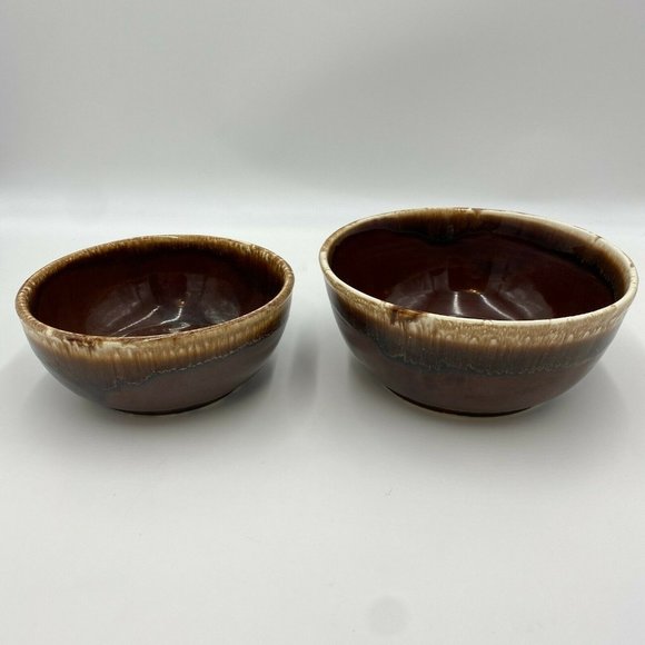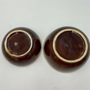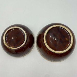 Features: Vintage Brown Drip Glaze Bowl, One large one medium sized, Made in USA, set of Two