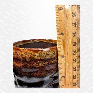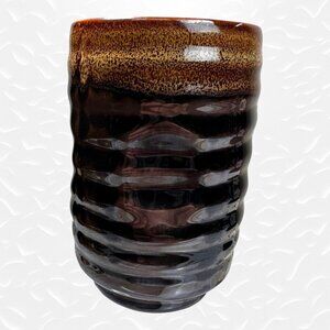 Vintage Brown Drip Glaze Porcelain Tumbler Rustic Artisan Pottery 5" Tall