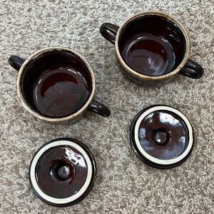 Vintage Brown Drip Glaze Sugar Bean Pots w/ Lids - Set of Two