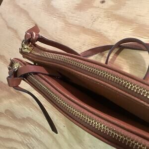 Vintage Brown Faux Leather Crossbody Double Zipper Purse