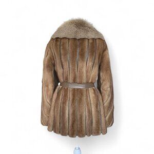 vintage fur jacket fox fur coat belted jacket brown fur winter outerwear luxury vintage statement jacket