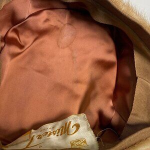 Vintage Brown Fur Pillbox Hat by Mister T Satin Lined Union Made in USA