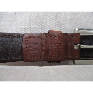 Vintage Brown Genuine Leather Silver Metal Link Belt Size Medium