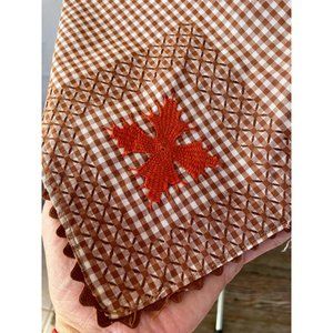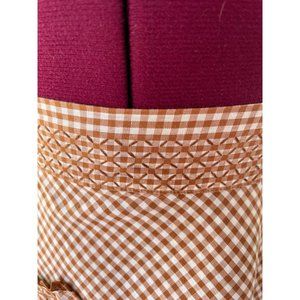Vintage Brown Gingham Checked Smocked Embroidered Half Apron