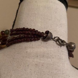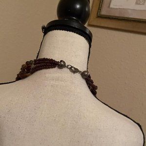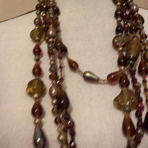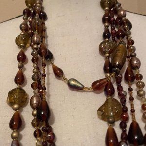 Vintage Brown Glass Beaded Multi Strand Statement Costume Necklace