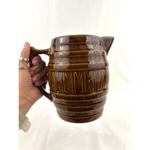 Vintage Brown Glaze Barrel Pitcher Pottery