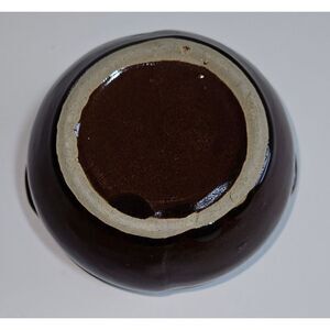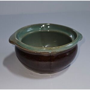 Vintage Brown Glazed Pottery Small Dish Bowl Turquoise Handles & Interior