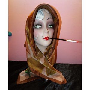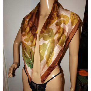 Vintage Brown & Gold Leaves Scarf extra large bohemian hippy retro pinup