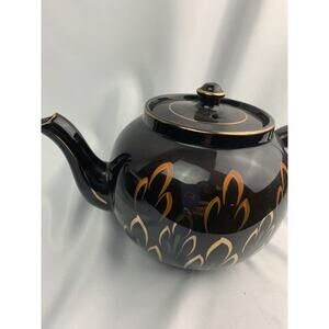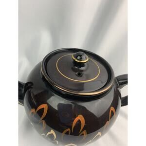Vintage Brown Heath Ceramics Teapot Made in England Gold Trim Painted Design