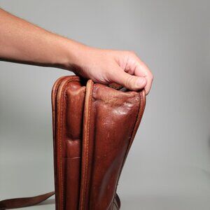 Vintage Brown Italian Leather Messenger Bag Swivel Clasp