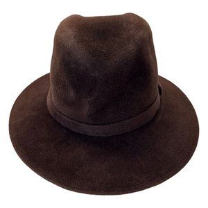 Henry Pollak Vintage Brown Launcelot Genuine Velour Hat. Made in Poland. Circa 1930's-1960's. Boho vibes. Gypsy. Indie. Wide brim hat. Fall hat. Winter hat. *AI model depiction of style. Halloween costume. Vintage hat.
