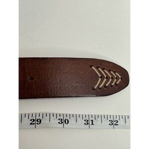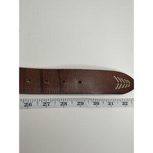 Vintage Brown Leather Belt With Embroidered Arrows & Silver Buckle Size S