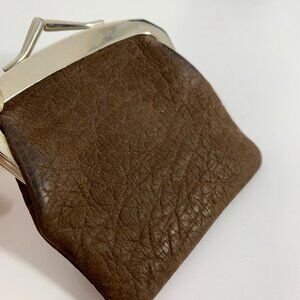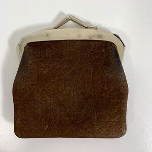 Vintage Brown Leather Coin Purse With Silver-Tone Metal Frame Closure