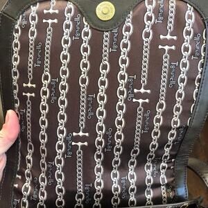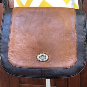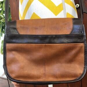 Vintage Brown Leather Crossbody Saddle Bag Handbag Two Tone Distress Tignanello