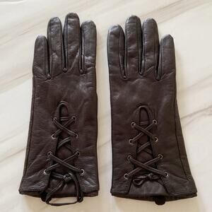 Vintage Brown Leather Gloves ILI Lace Up Womens Small 6 1/2