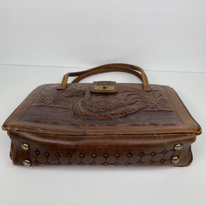 Vintage Ideal Brown Leather Hand Tooled Mexican Bag Purse with Duck Pond