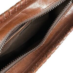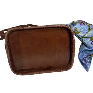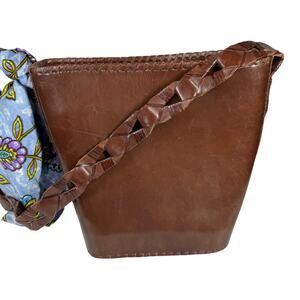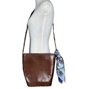 Vintage Brown Leather Shoulder Bag Woven Strap Floral Scarf Boho Classic Casual