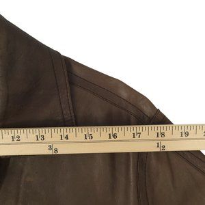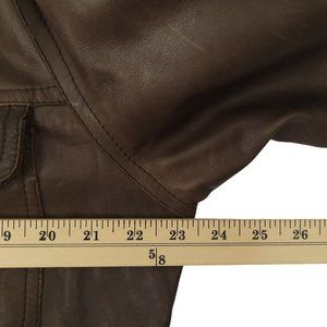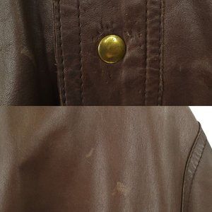 Vintage Brown Leather Snap Front Jacket Men L Made in England Flap Slash Pockets
