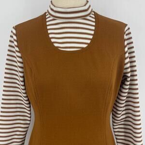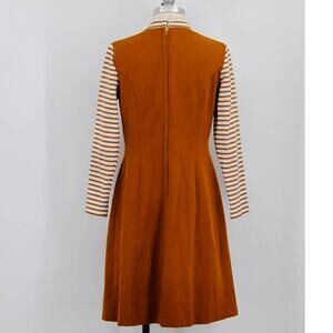 Vintage Brown Long Sleeve Striped Dress