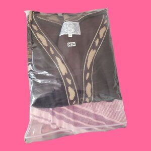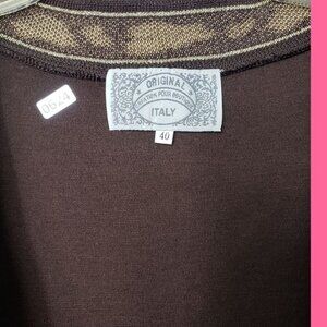 This cardigan features intricate embroidery details and a soft brown fabric. Ideal for a sophisticated look, it offers both style and comfort.it does not have the care instruction is in great condition from smoke and pet free home.