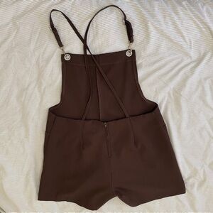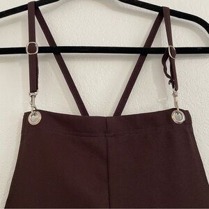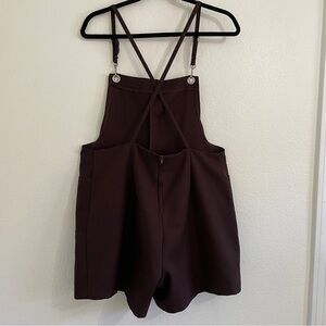 Vintage Brown Polyester Shortalls Romper 70’s Swivel Eye Snap Hook Closure