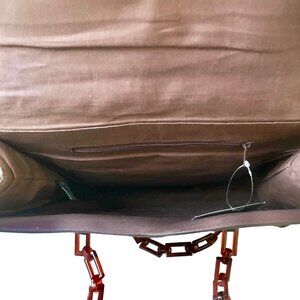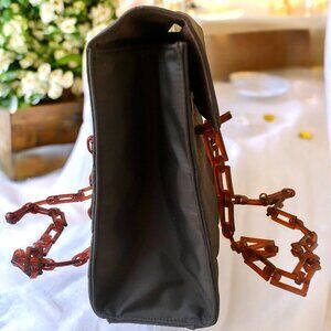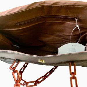 Vintage Brown Quilted Nylon Shoulder Handbag Plastic Chain Handles New