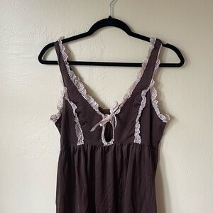 Vintage Brown Ruffle Milkmaid Lingerie Slip Dress