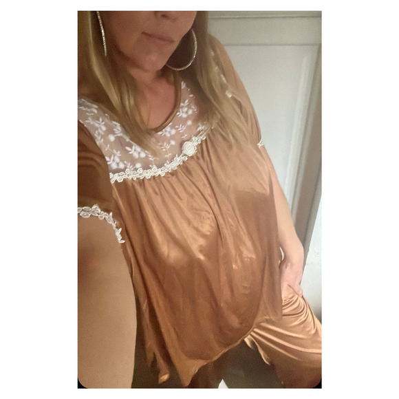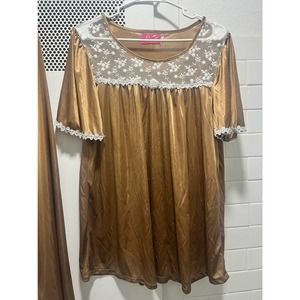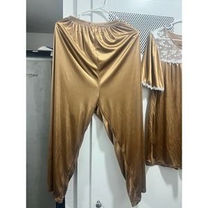 Vintage Brown Silky Ruffled Sleepset Pajamas XXL