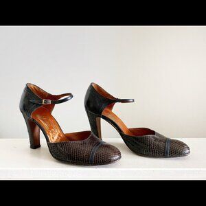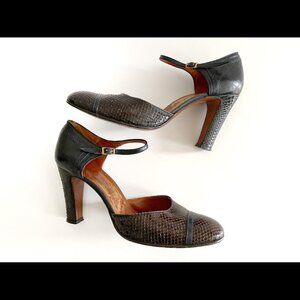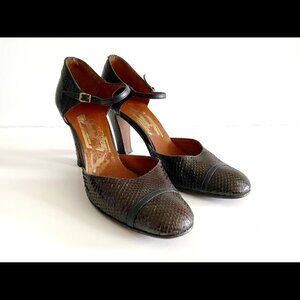 Vintage Brown Snakeskin Mary Jane Heels Ankle Strap 6.5