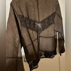 Vintage Brown Suede Crochet Jacket Corducci