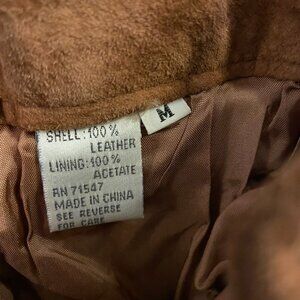 Details- This is a pair of vintage brown suede shorts by Don't Stop. Features a gathered elastic paper bag style waist and pockets. Lined.