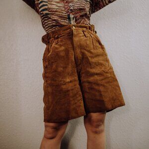 Vintage Brown Suede Leather Paper Bag Shorts High Rise | Size L/XL