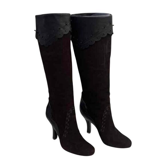 Vintage Brown Suede Scalloped Knee-High Y2K Boots 8.5