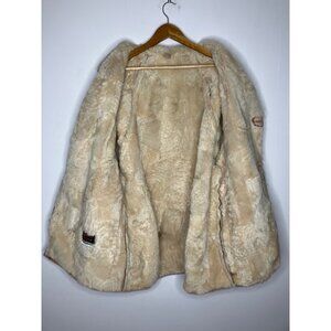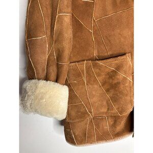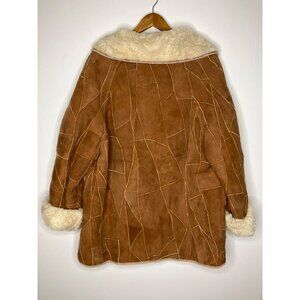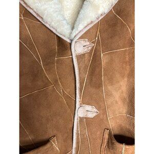 Vintage Brown Suede Shearling Coat With Faux Fur Lining & Button Closures Mens L