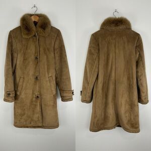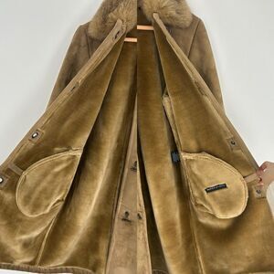 Vintage Brown Tan Dana Buchman Faux Fur Shearling Coat with Fur Collar