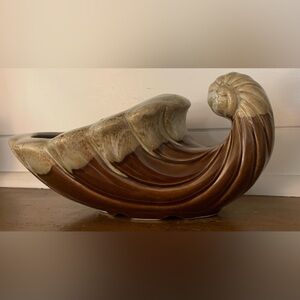 Vintage Brown & Tan Drip Glaze 260 USA Ceramic Cornucopia