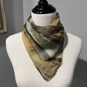 Vintage Brown, Tan, Olive Green, Grey Striped Neck Hair Scarf 20.5" x 20.5"