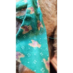 Vintage Brown Teddy Bear With Green Christmas Scarf