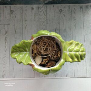 Vintage Brown Tree & Green Leaf Hand-Crafted & Painted Ceramic Beverage Pitcher Very Good Used Condition. Currently used as a potpourri decorative container. FREE bonus "Thank You" gift.